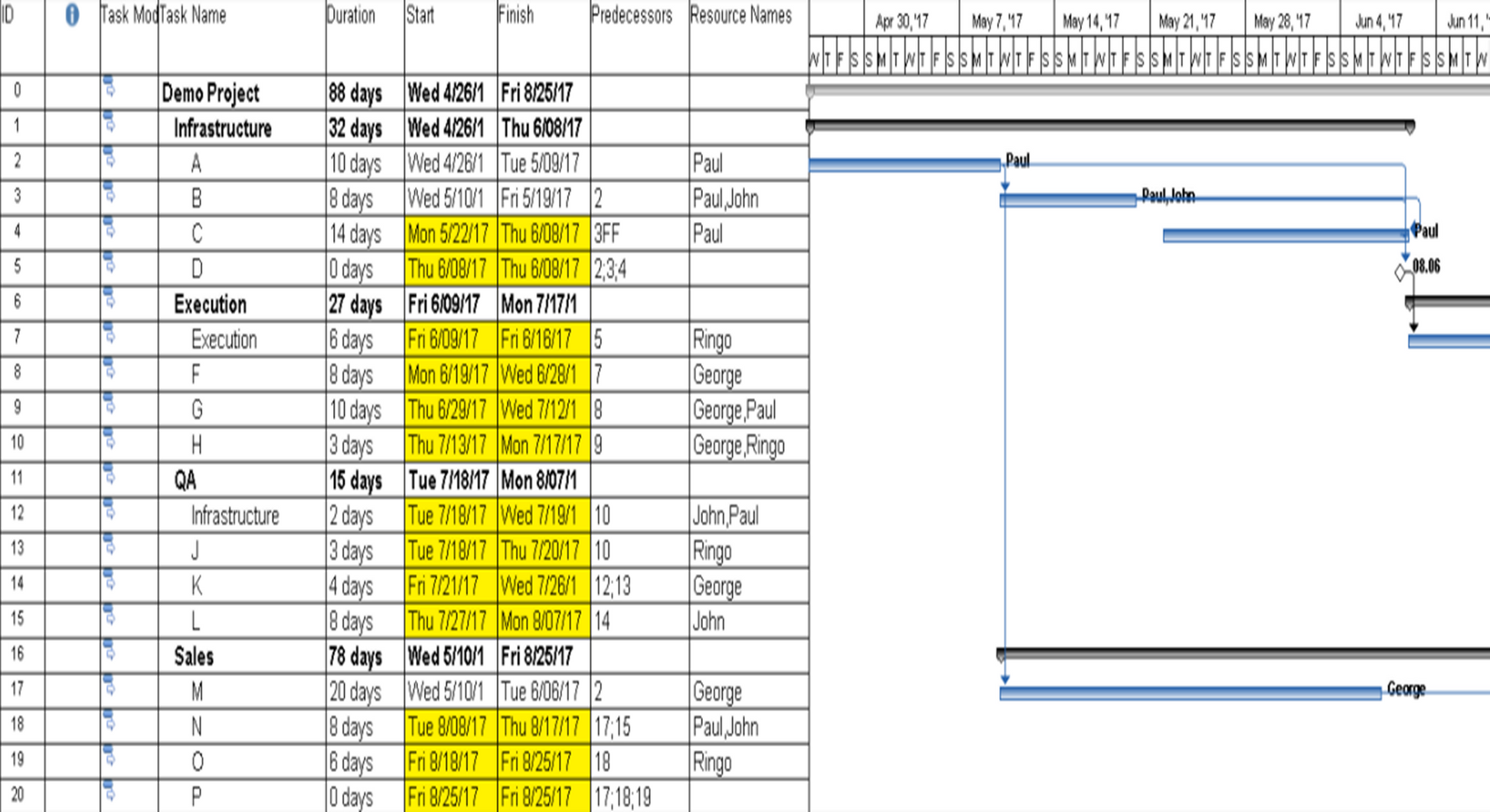 - Critical Path MS project